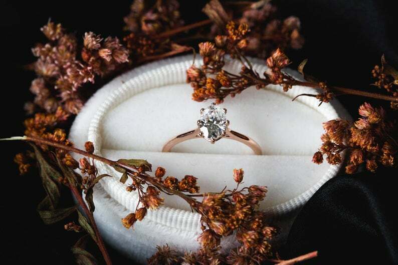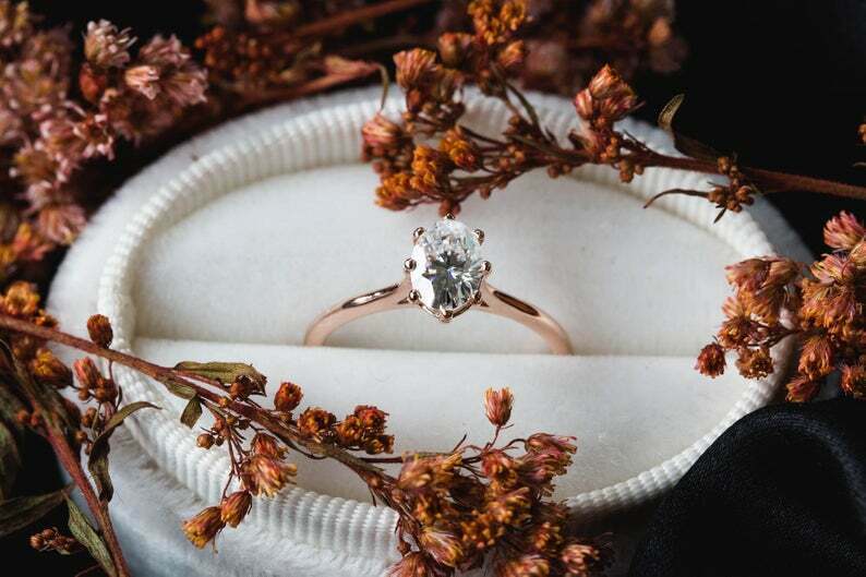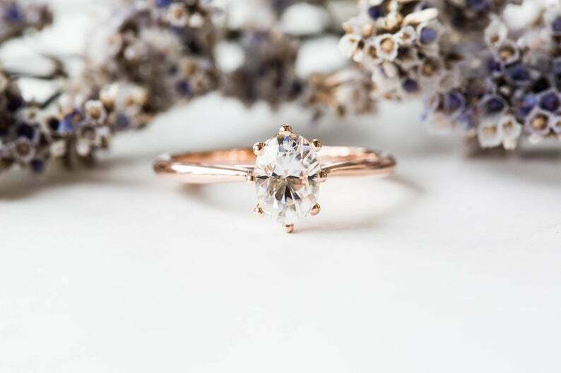 Solitaire Women Engagement Ring 1ct Oval Cut VVS1D Diamond 14k Rose Gold Finish