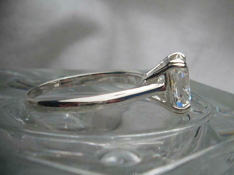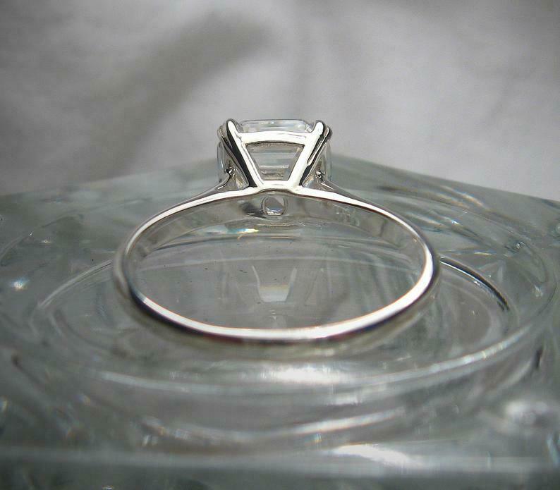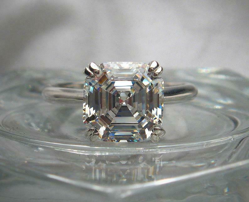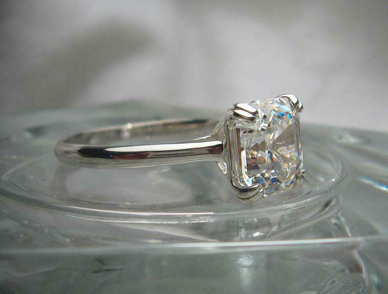 Solitaire Women Engagement Ring 4ct Asscher Cut Diamond 14k White Gold Finish