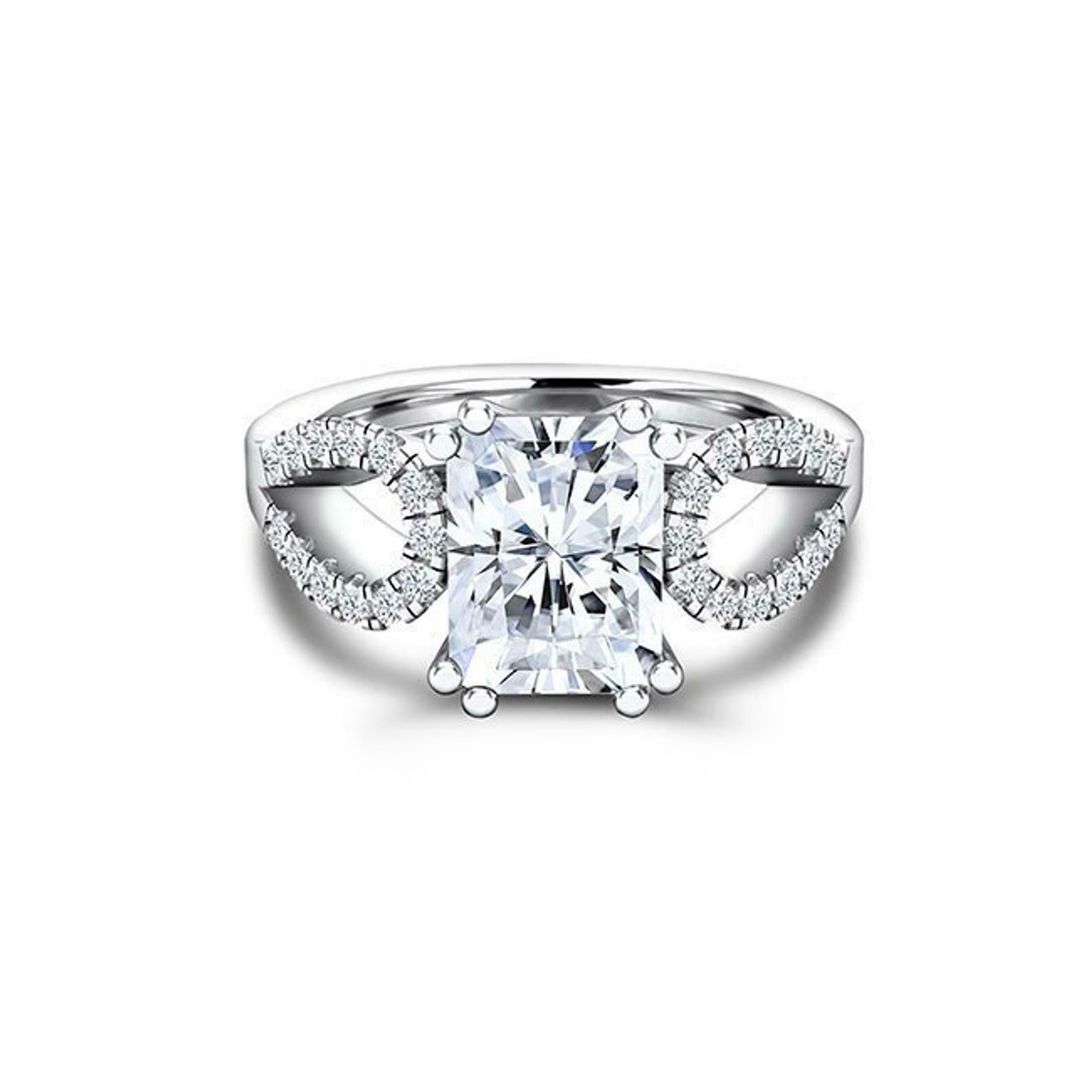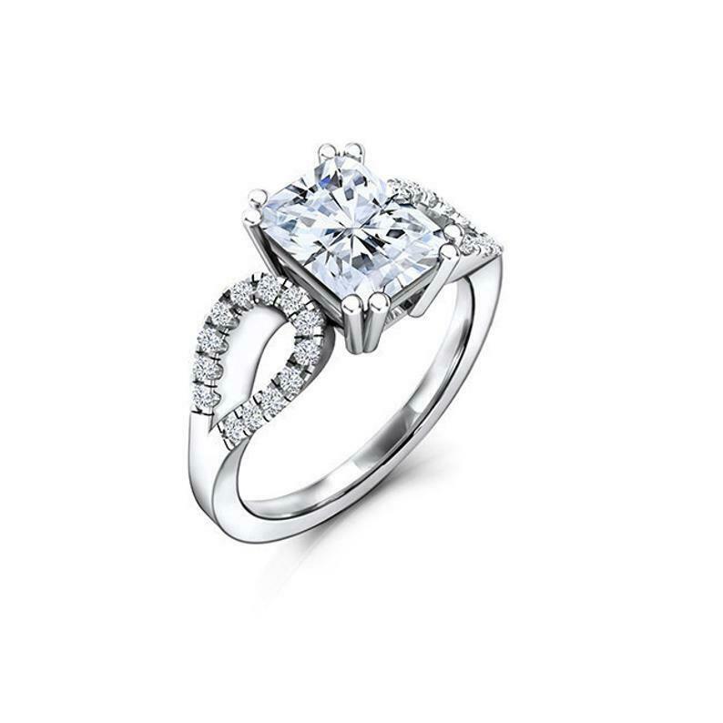 Split Open Shank Solitaire Accents Ring 2ct Radiant Cut Diamond 14k White Gold Over