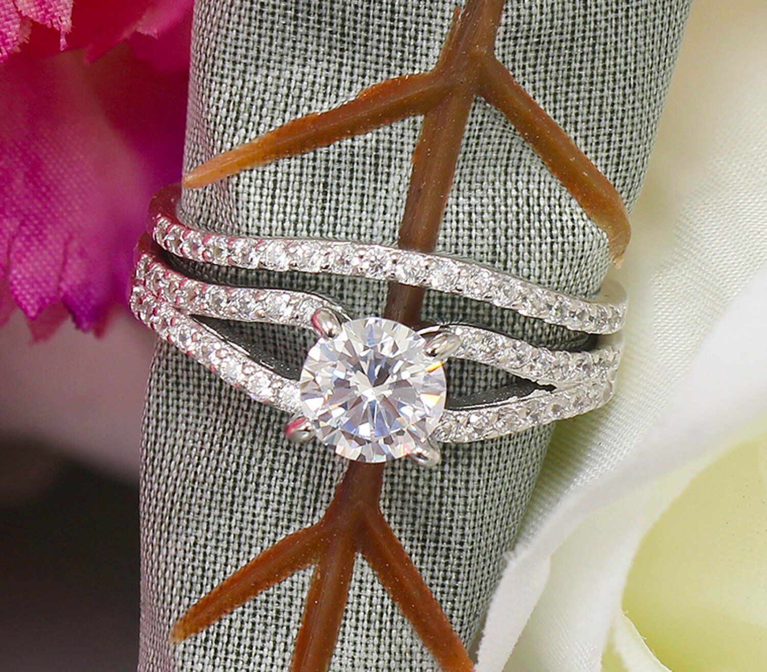 Split Shank Bridal Set Engagement Ring 2ct Round Cut Diamond 14k White Gold Over