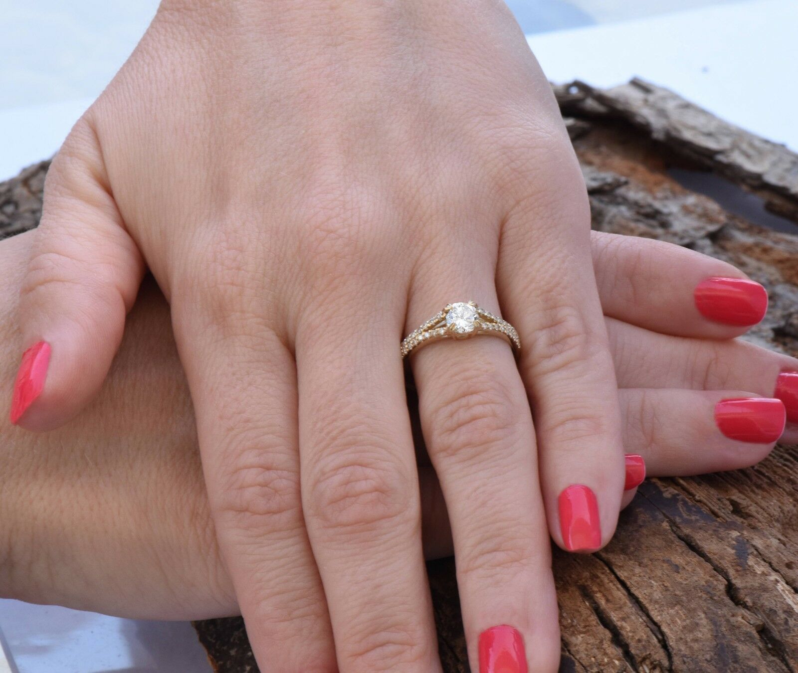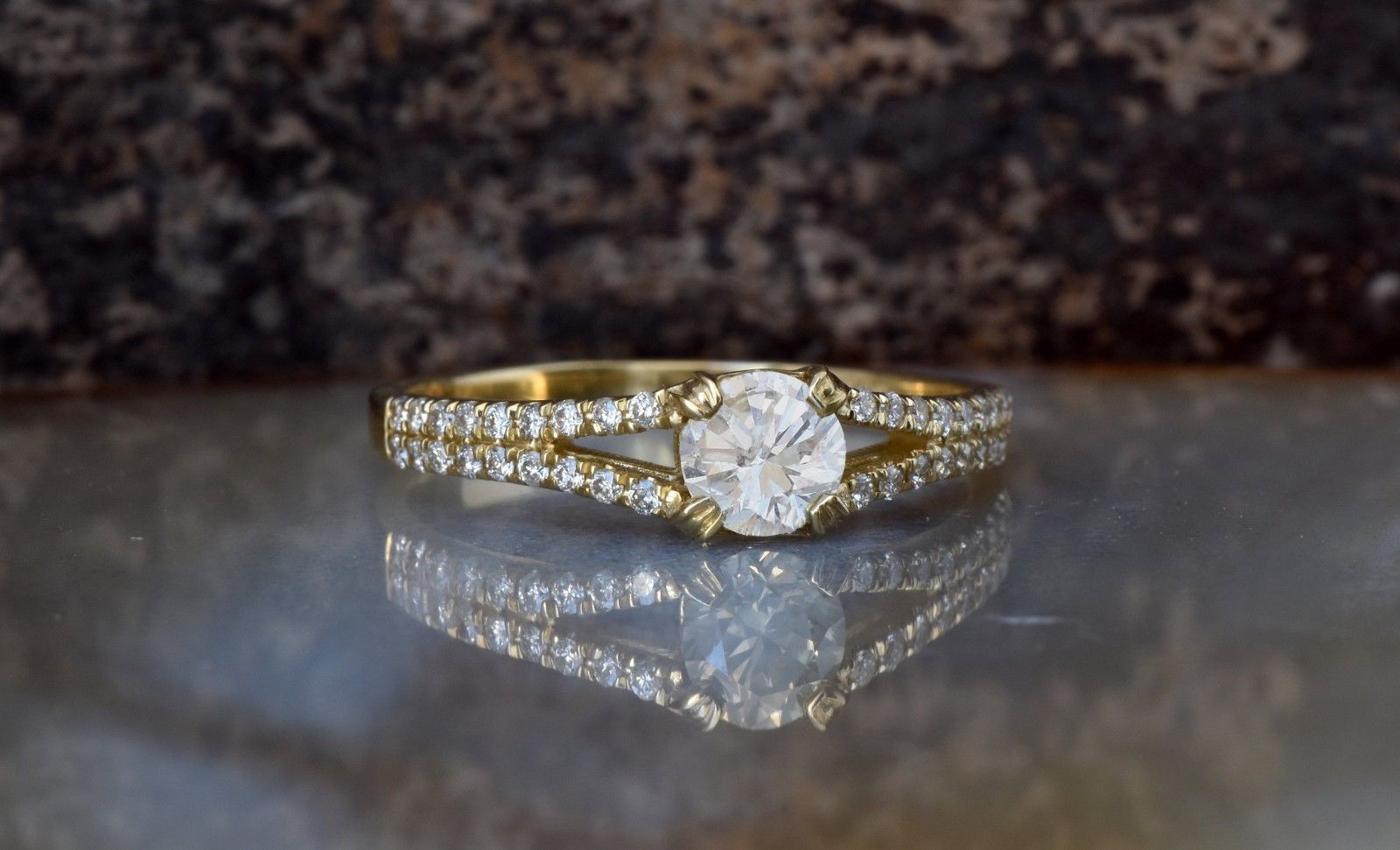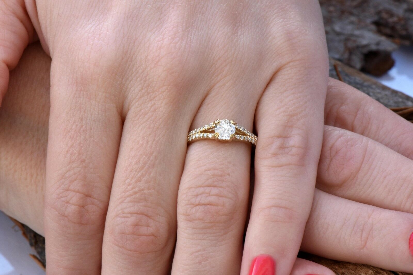 Split Shank Engagement Ring 1.6ct Round Cut VVS1D Diamond 14k Yellow Gold Finish