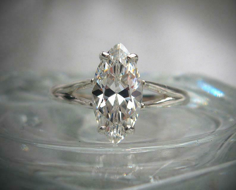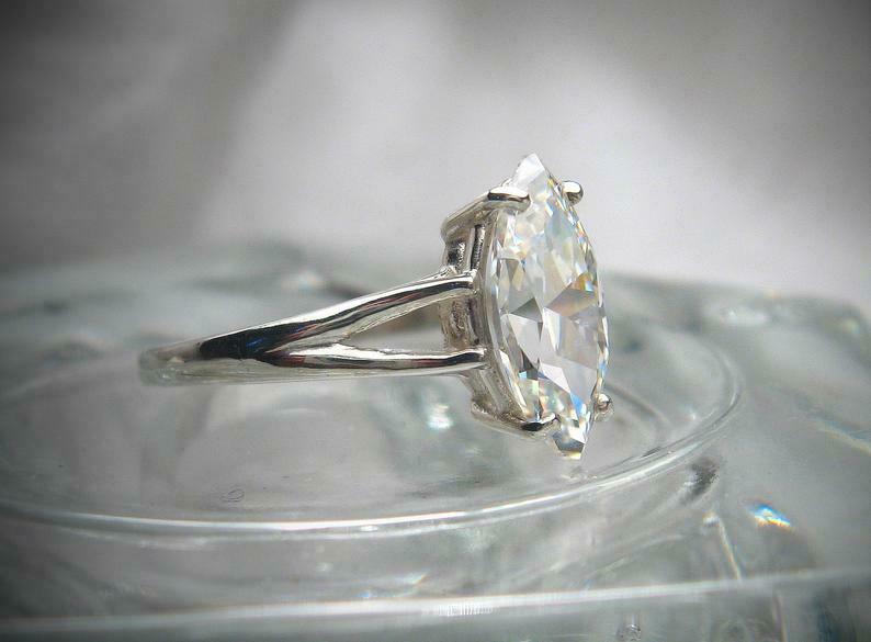 Split Shank Solitaire Engagement Ring 2.5ct Marquise Diamond 14k White Gold Over