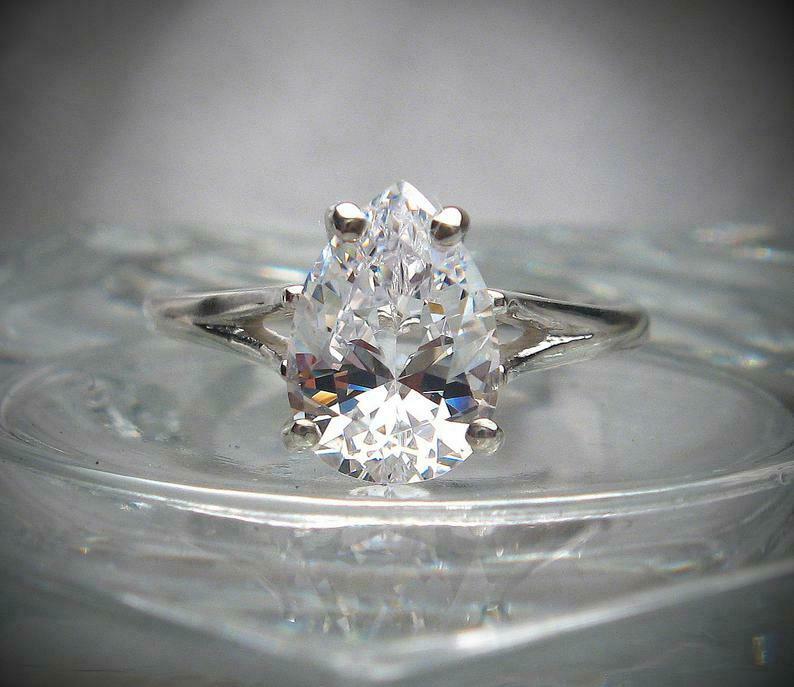 Split Shank Solitaire Engagement Ring 2ct Pear Cut Diamond 14k White Gold Finish