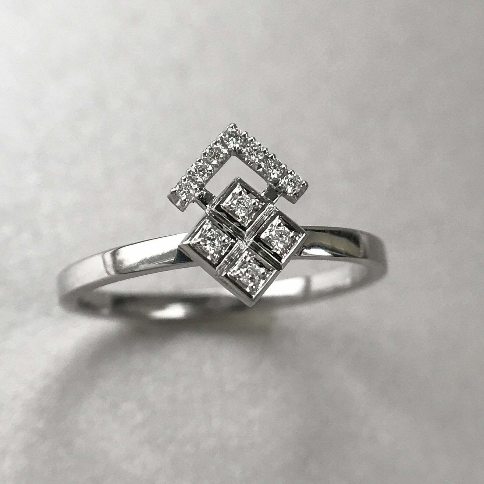 Square Crown Design Engagement Ring 1.2ct Round Cut Diamond 14k White Gold Finish