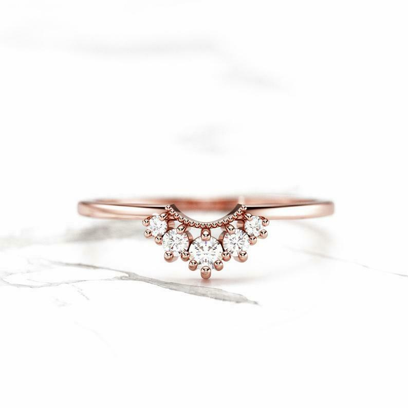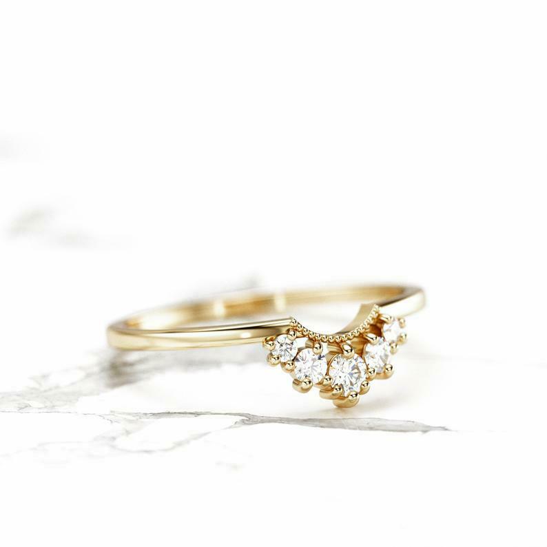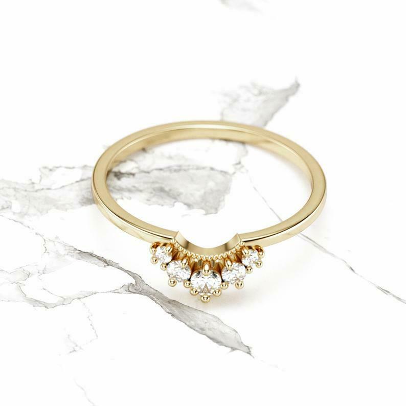 Stackable Curved Engagement Ring 0.7ct Round Cut Diamond 14k Yellow Gold Finish