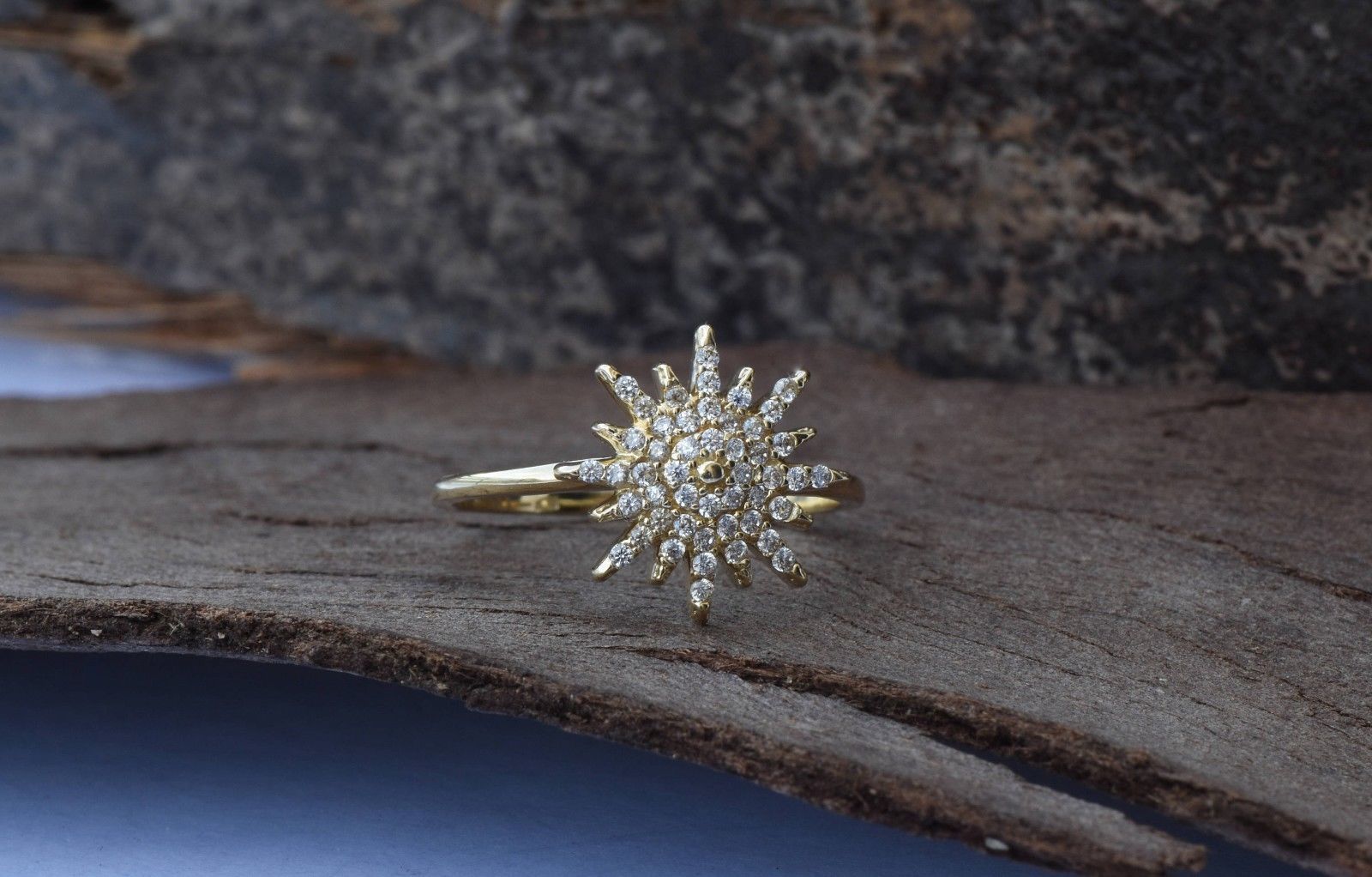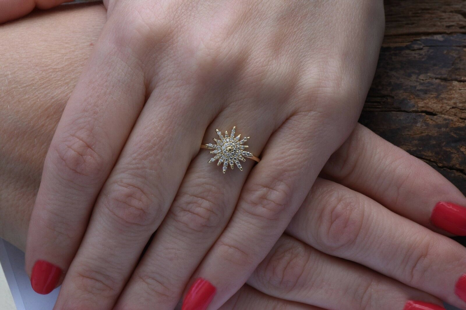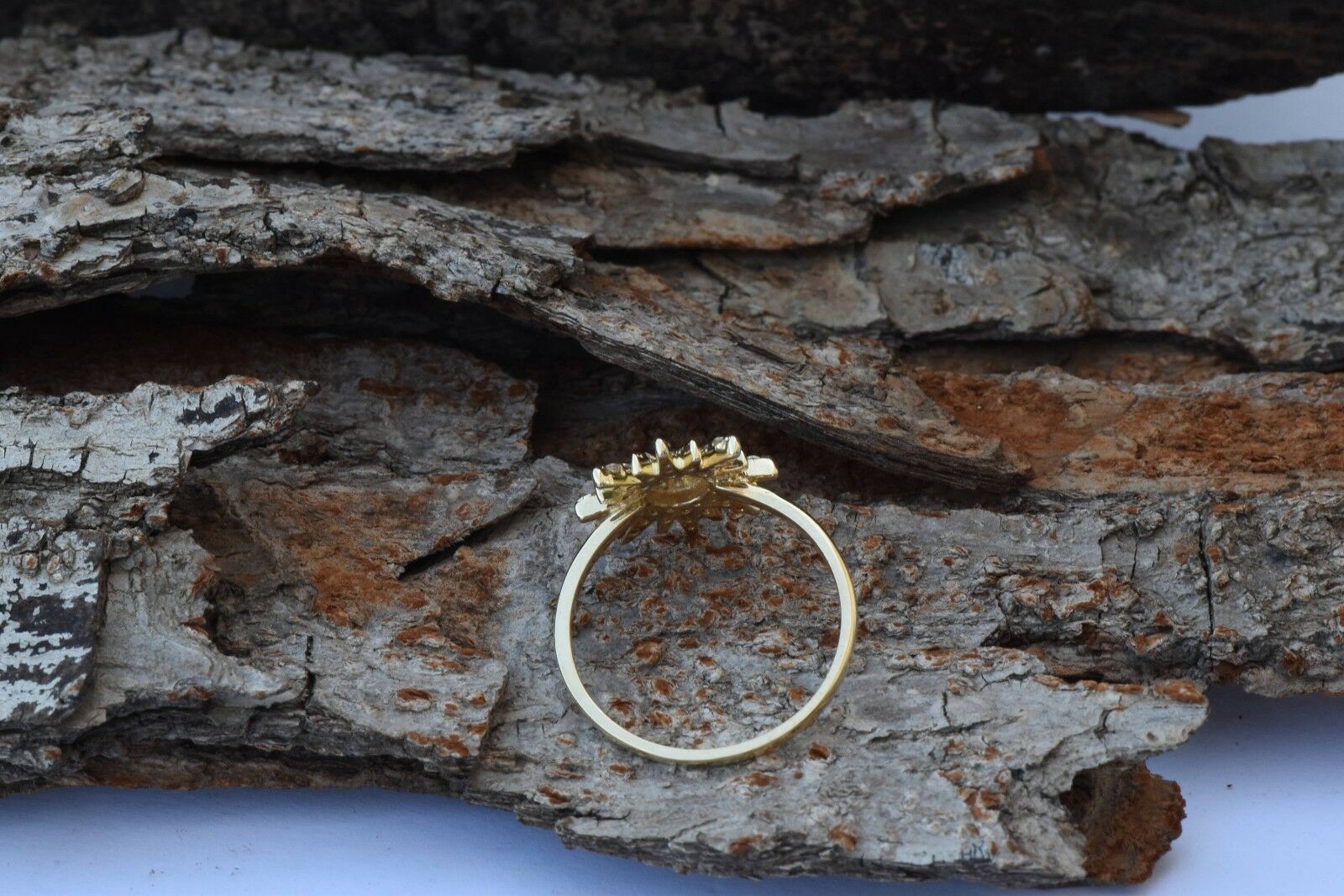 Statement Art Deco Minimalist Wedding Ring 1ct Round Diamond 14k YellowGold Over