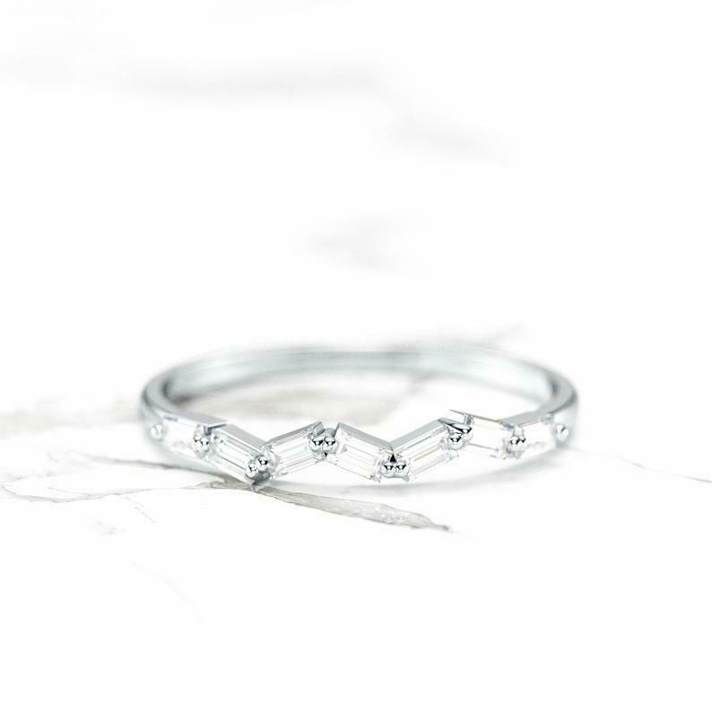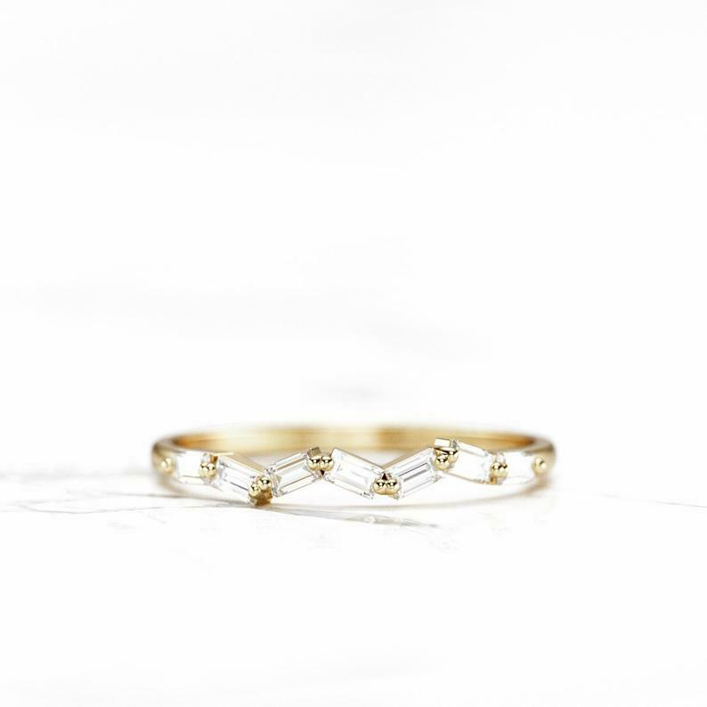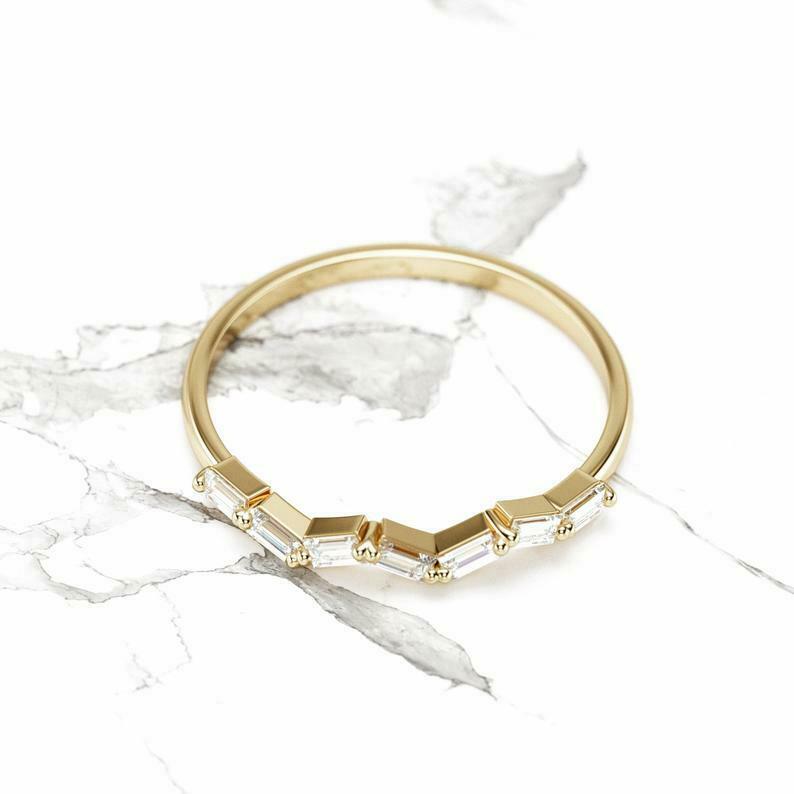 Stylish Stackable Wedding Band 0.5ct Baguette Cut Diamond 14k Yellow Gold Finish