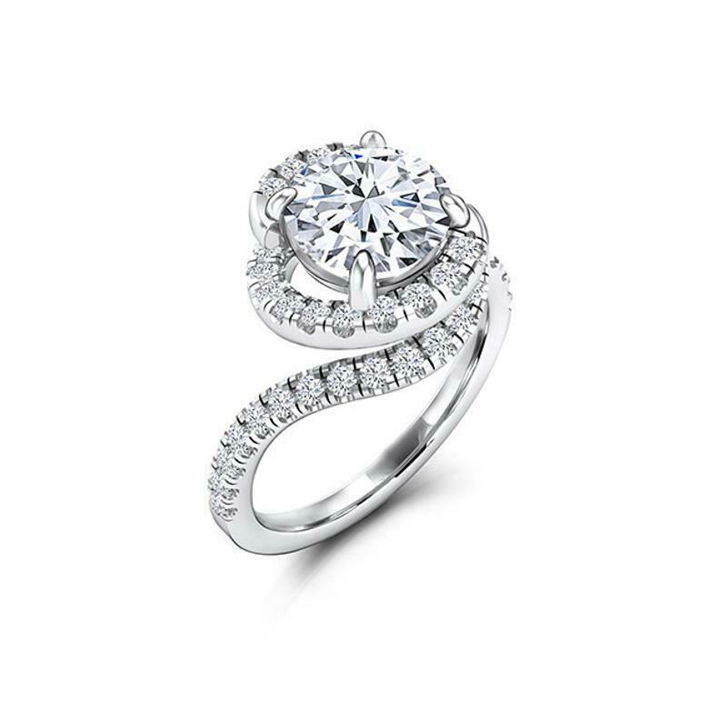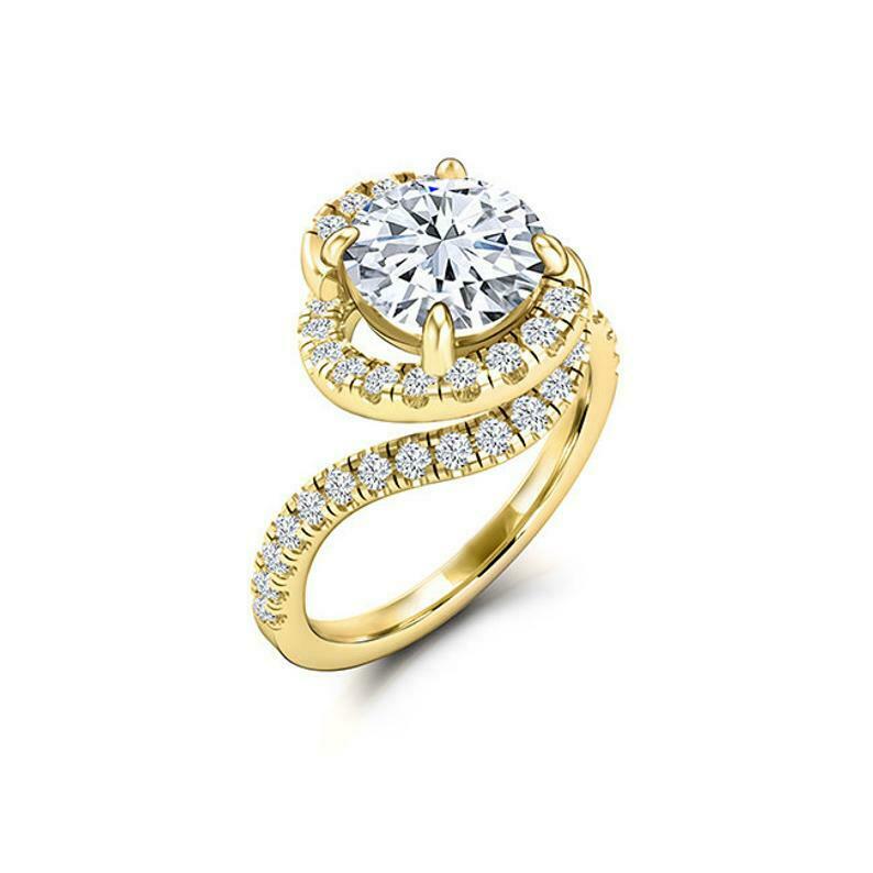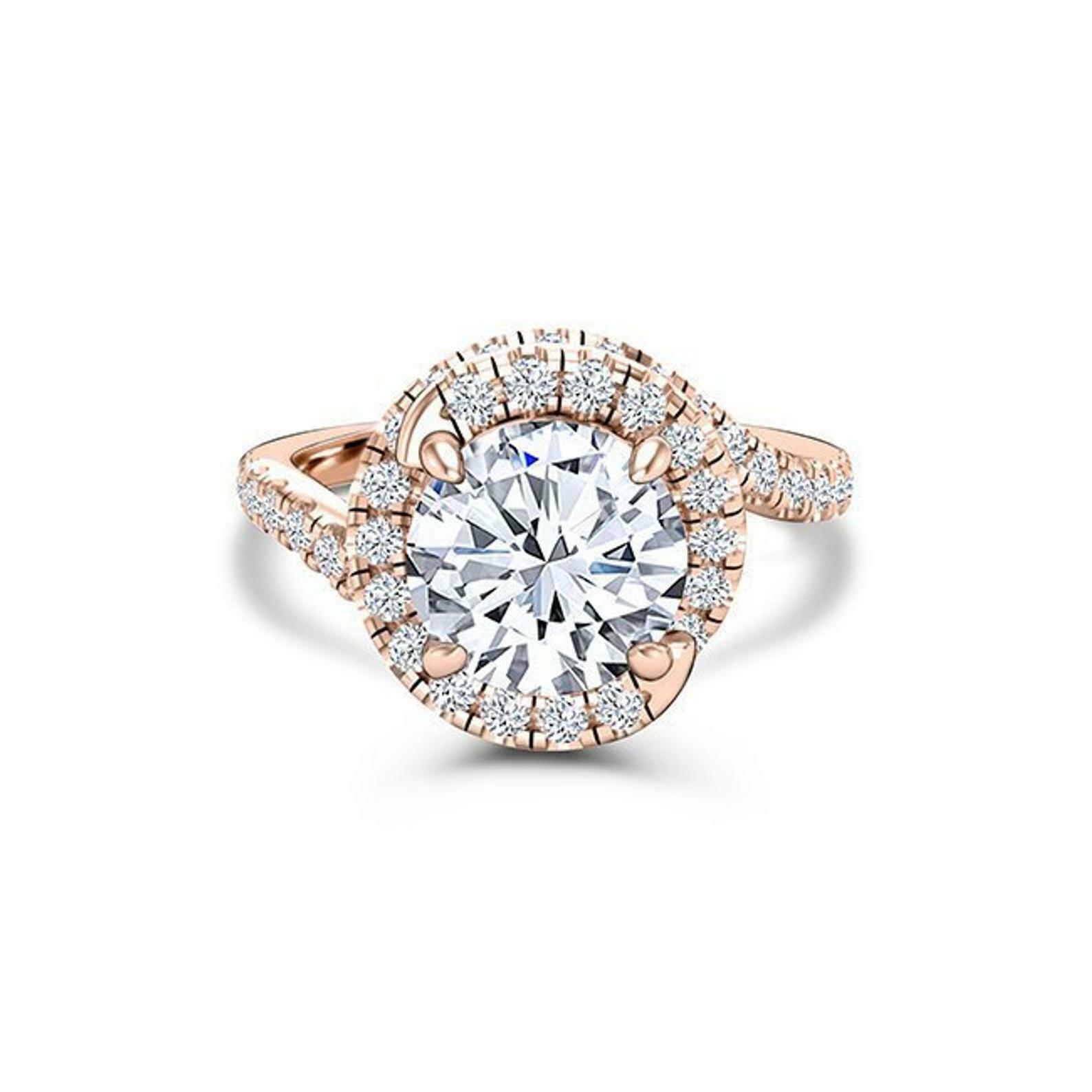 Swirl Twist Solitaire Engagement Ring 2ct Round Cut Diamond 14k Rose Gold Finish