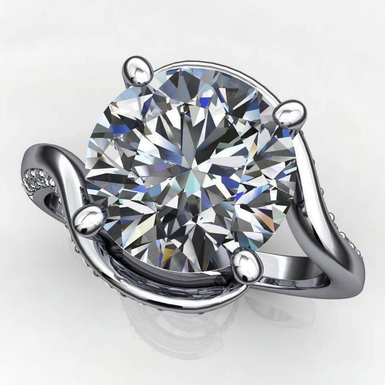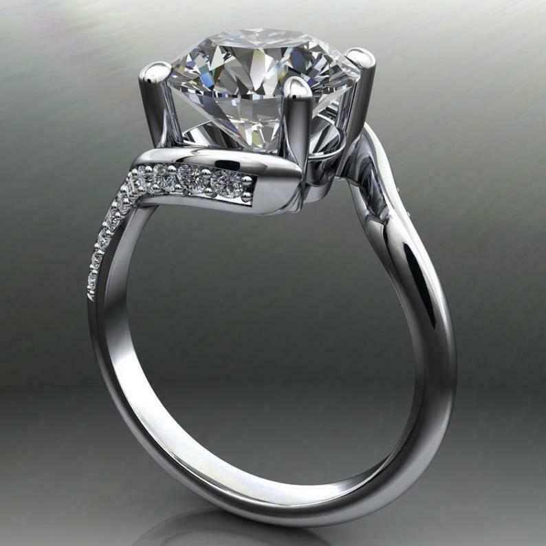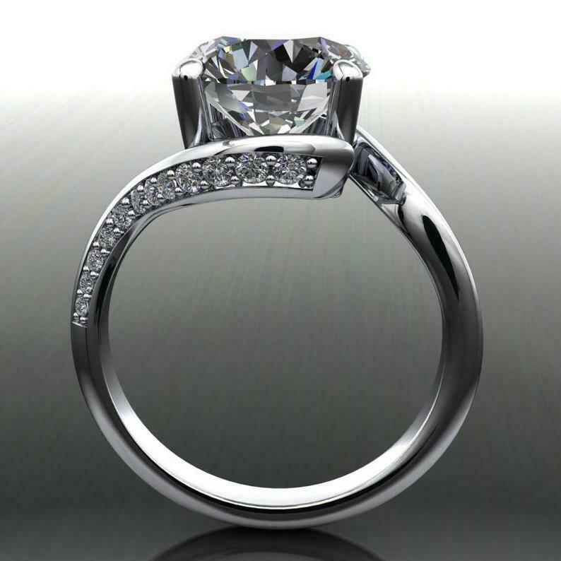 Swirl Twist Solitaire Engagement Ring 3ct Round Cut Diamond 14k WhiteGold Finish