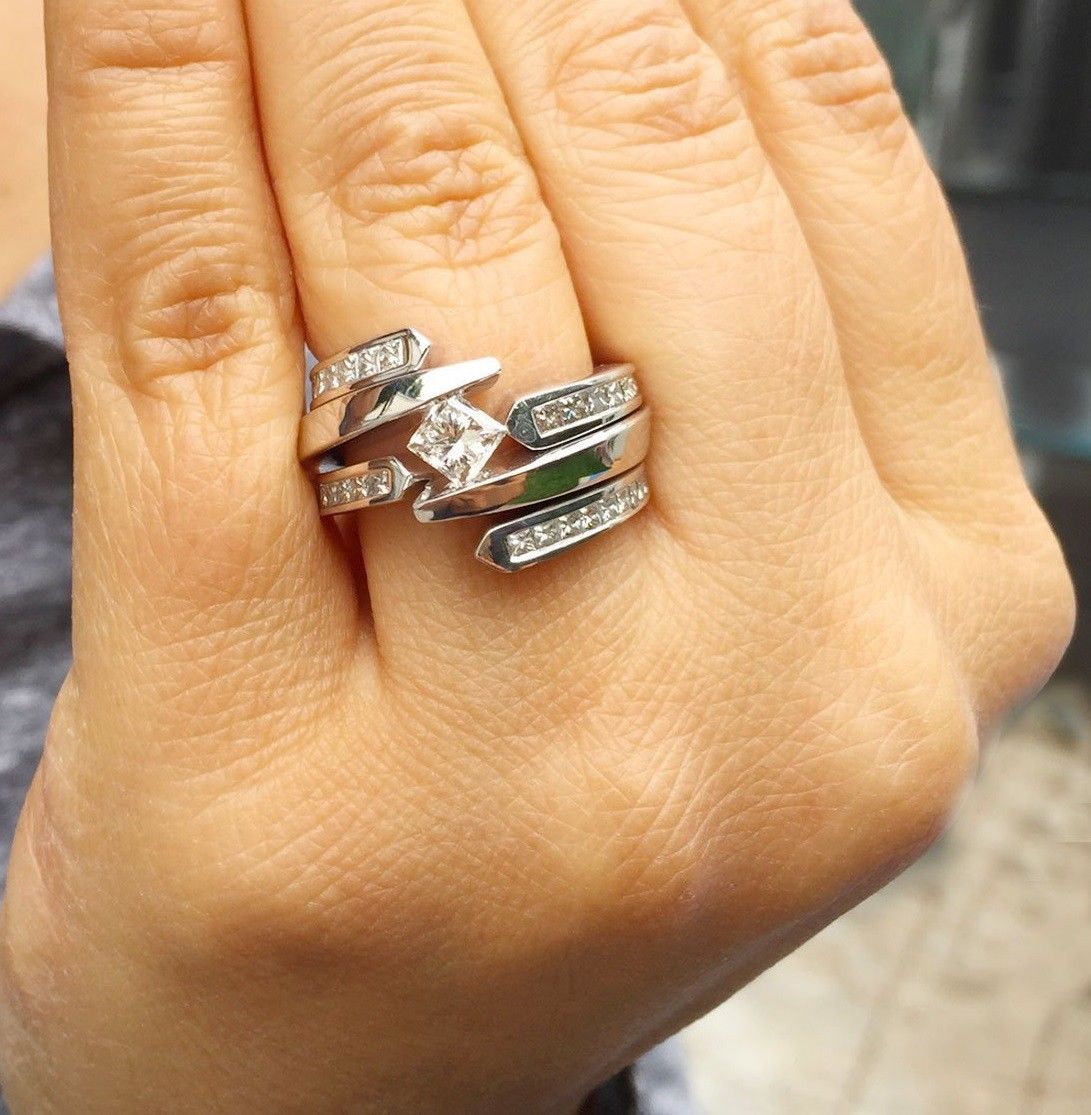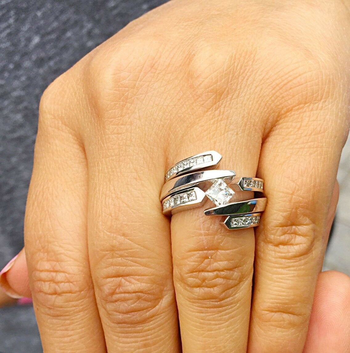 Tension Setting Wedding Engagement Ring 2ct Princess Diamond 14k White Gold Over