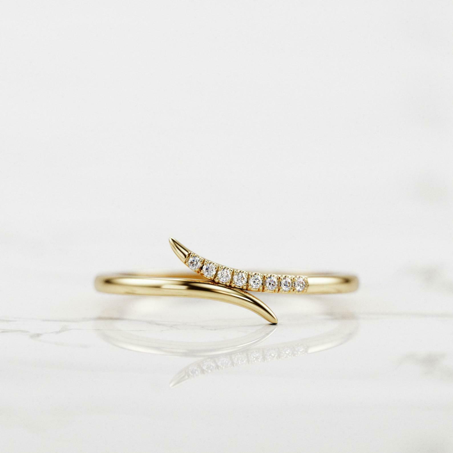 Thin Minimalist Bypass Engagement Ring 0.15ct Round Cut Diamond 14k Yellow Gold Over