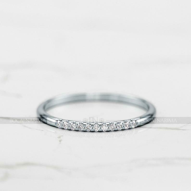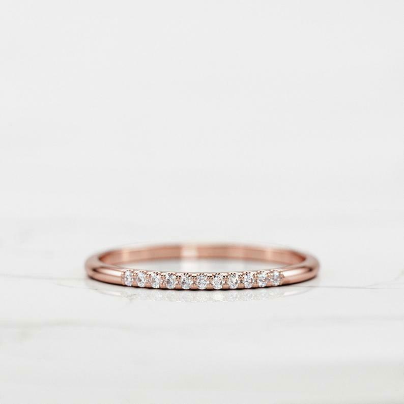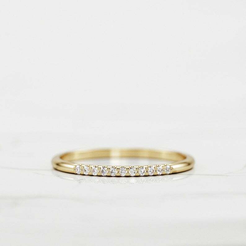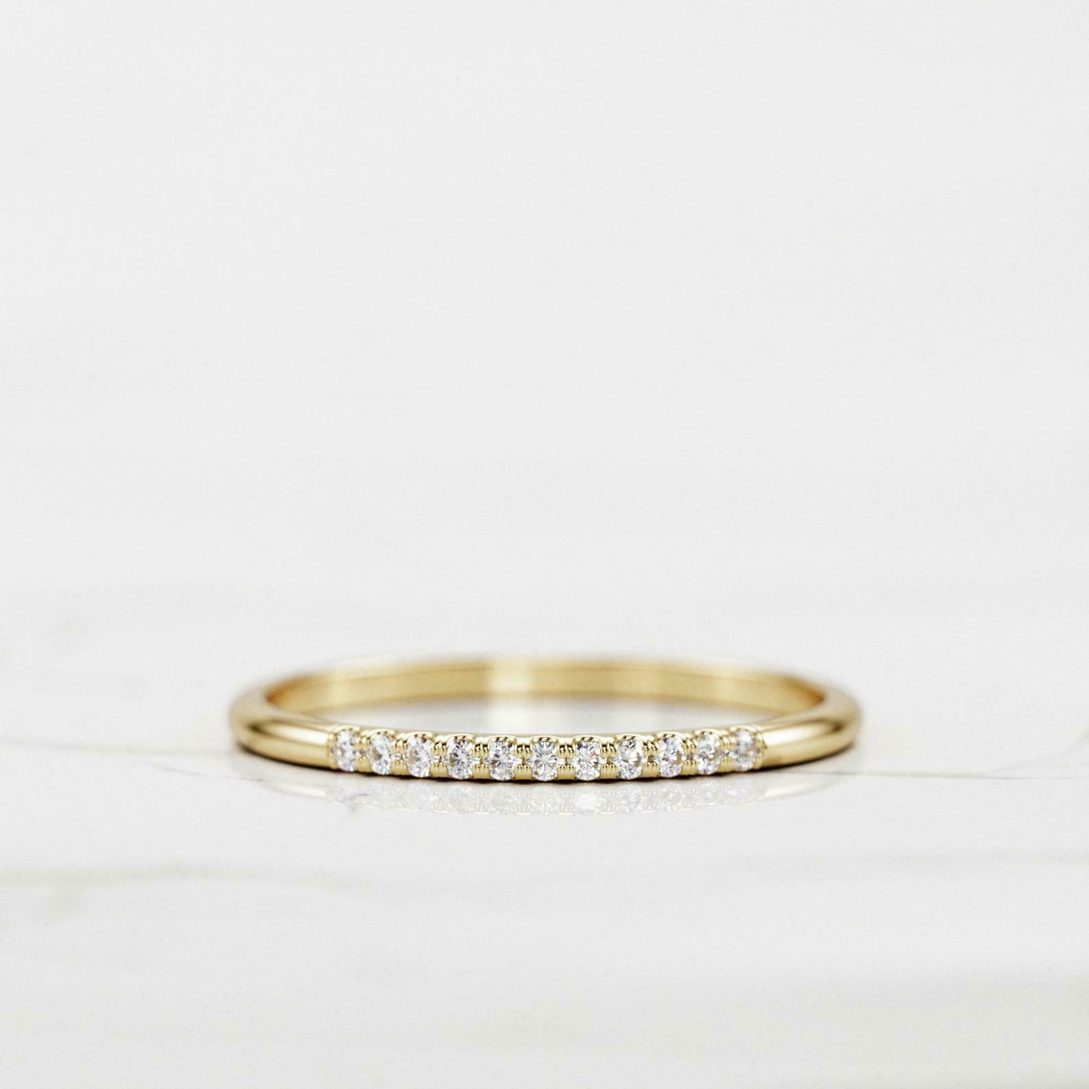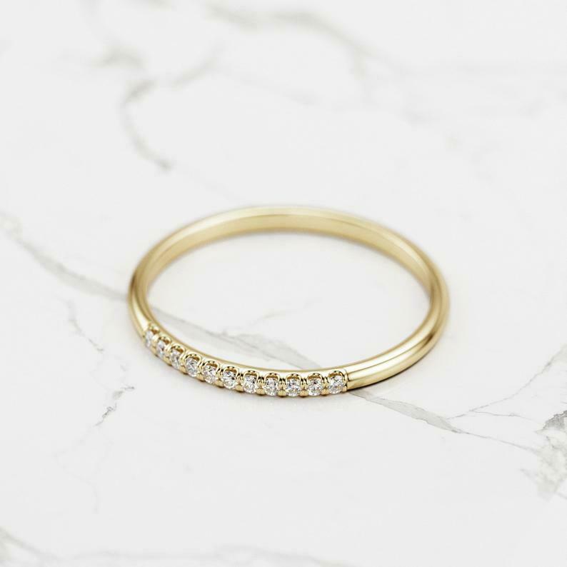 Thin Minimalist Wedding Band 0.4ct Round Cut VVS1 Diamond 14k Yellow Gold Finish