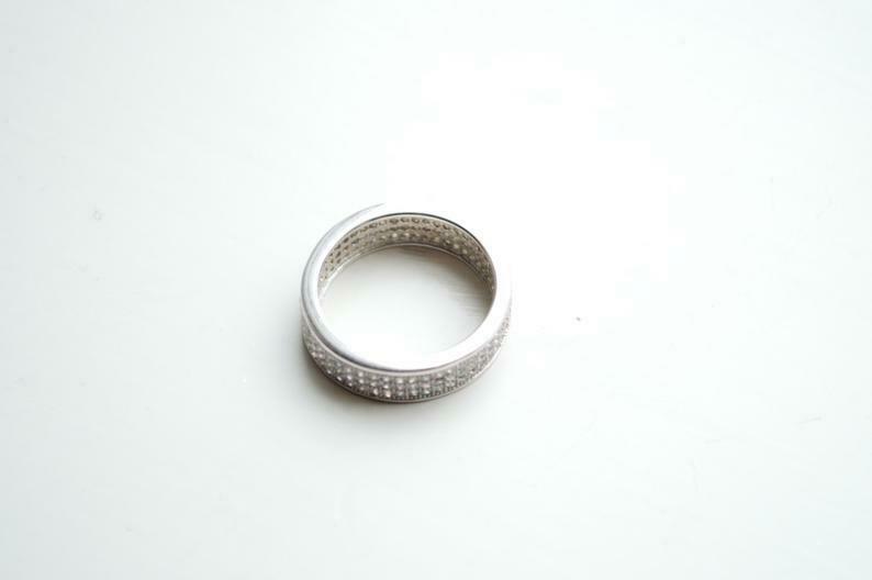 Three Row Full Eternity Wedding Band 2ct Round Cut Diamond 14k White Gold Finish