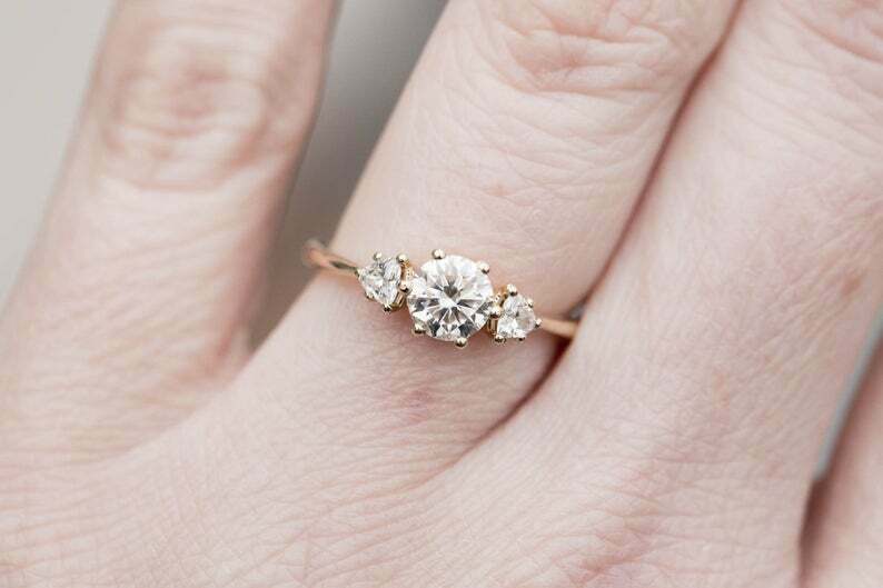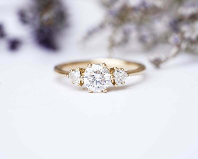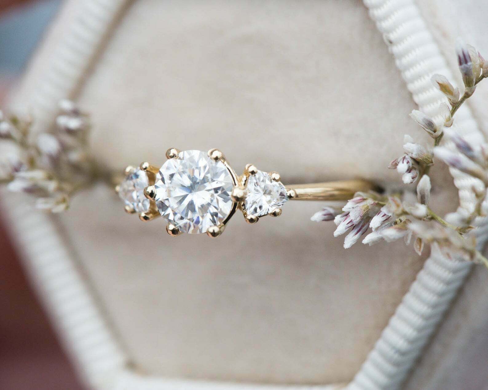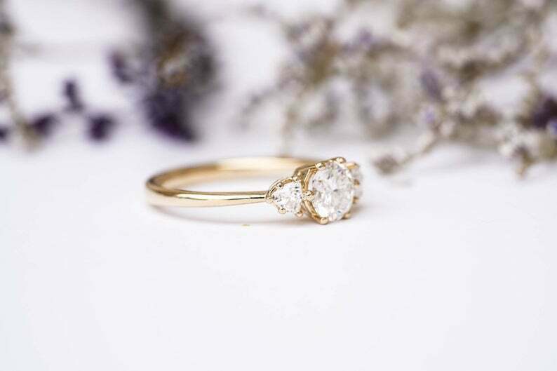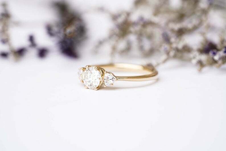 Trillion Accents Trilogy Engagement Ring 1.6ct Round Cut Diamond 14k Yellow Gold Over