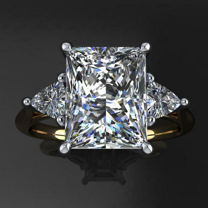 Trillion Accents Trilogy Engagement Ring 2.7ct Radiant Diamond 14k DualGold Over