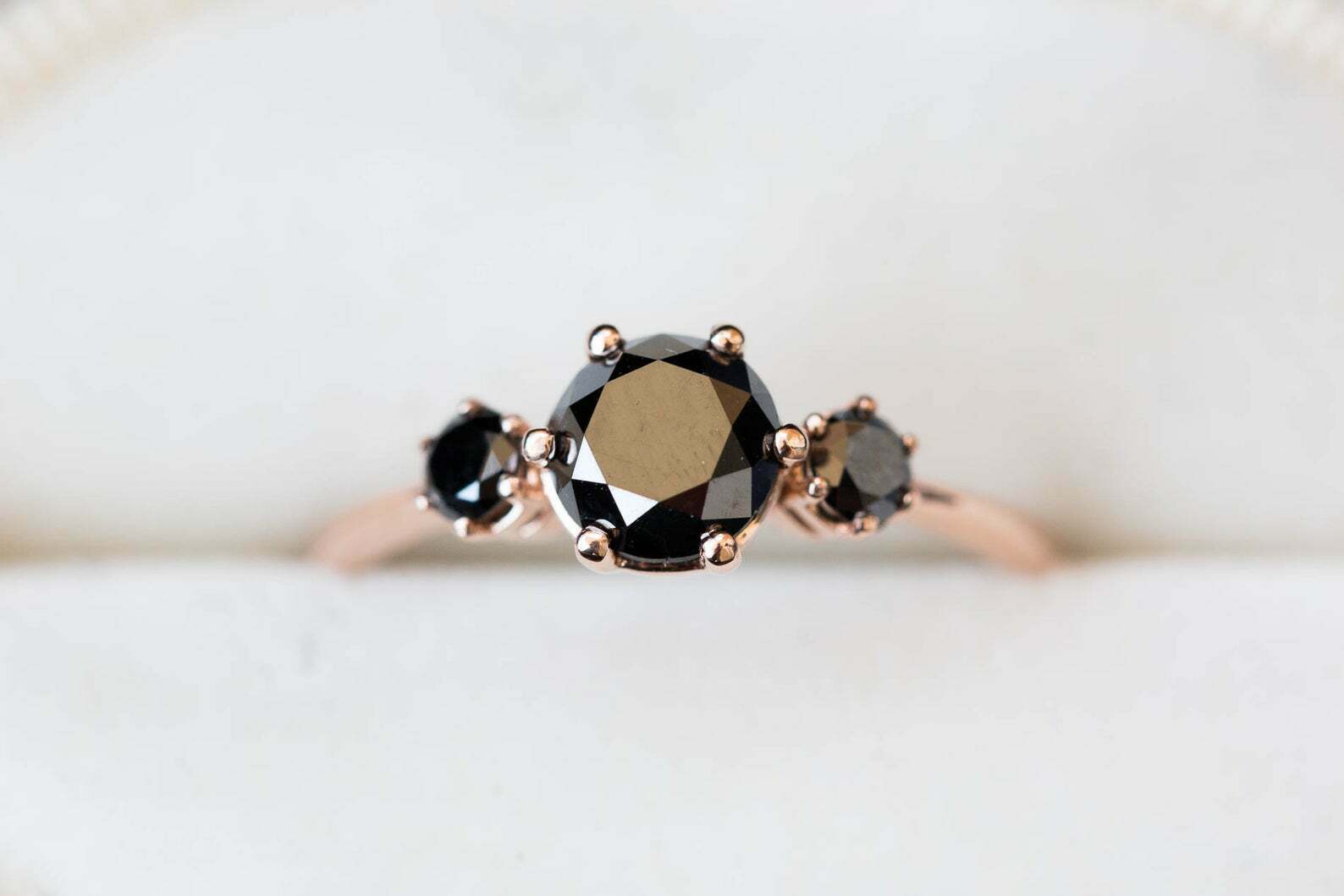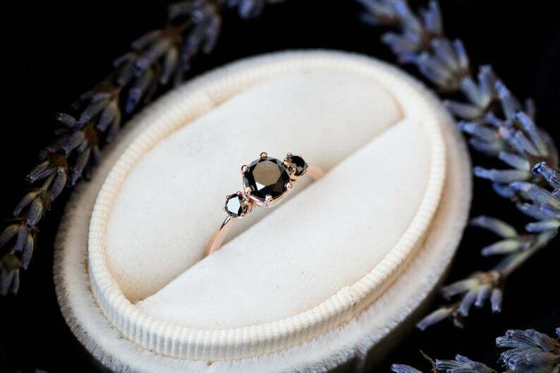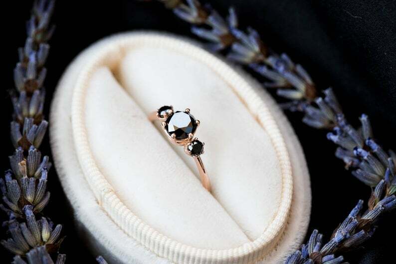 Trilogy Solitaire Engagement Ring 1.5ct Round Cut Black Diamond 14k Rose Gold Finish