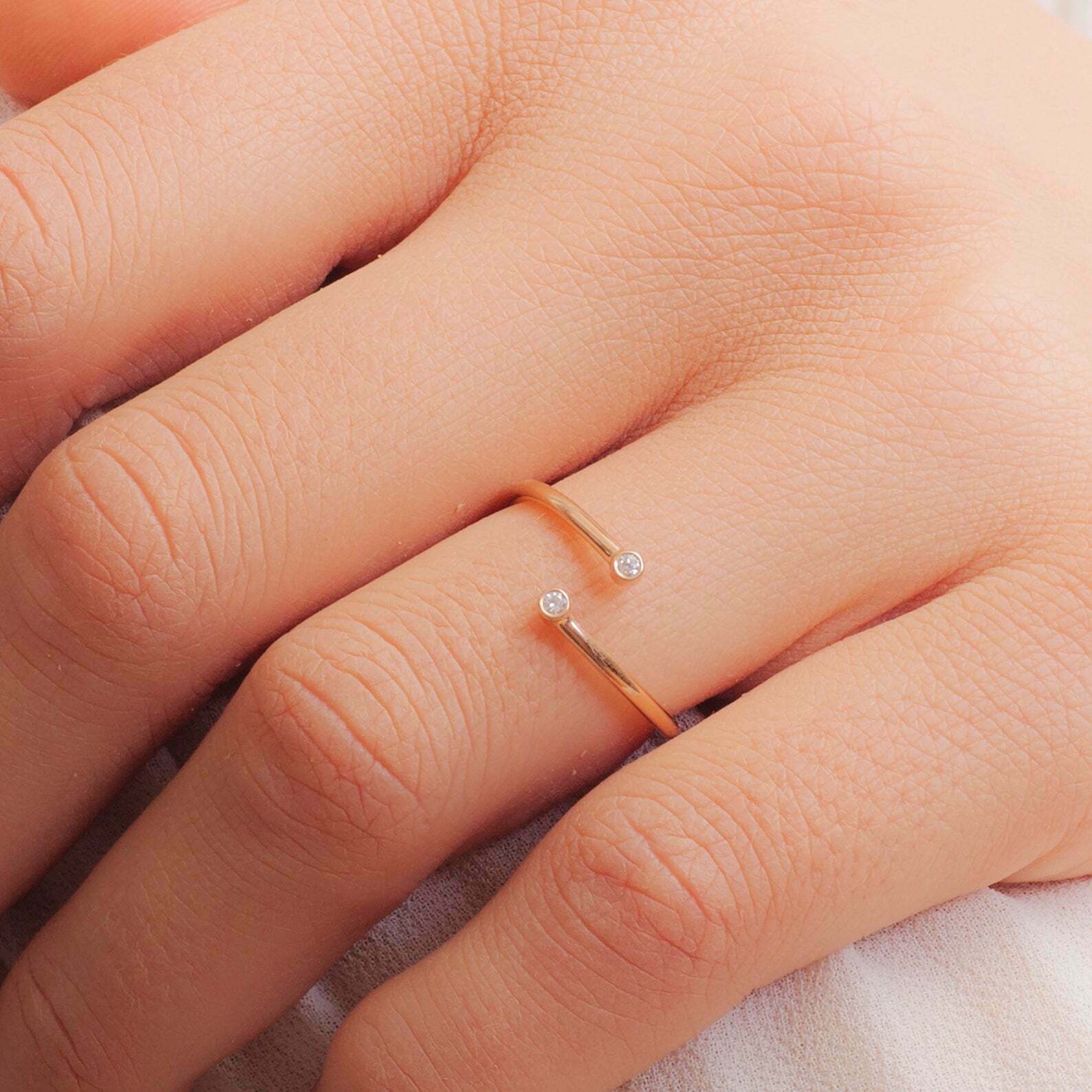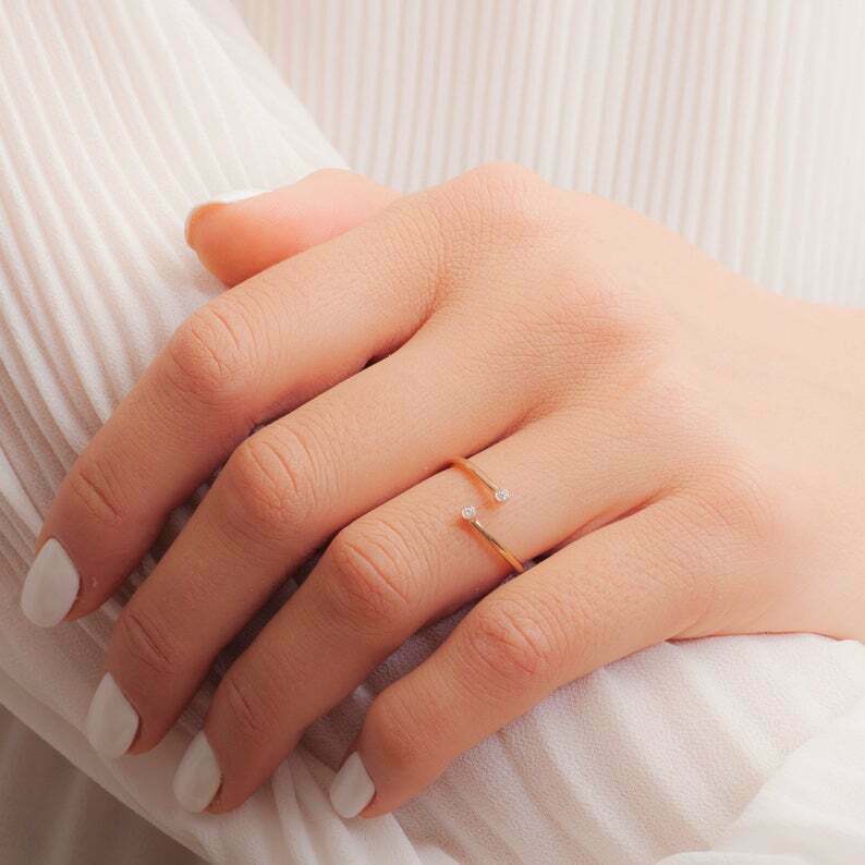 Two Stone Bypass Engagement Ring 0.09ct Round Cut Diamond 14k Yellow Gold Finish