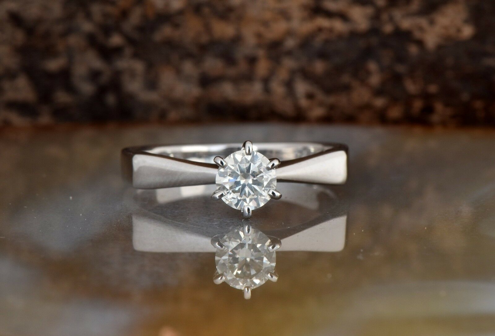 Unique Solitaire Engagement Ring 1ct Round Cut Diamond 14k White Gold Finish