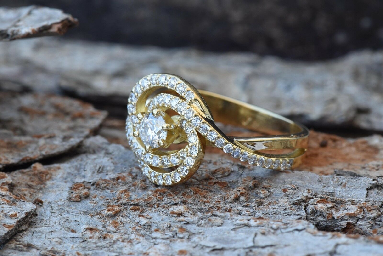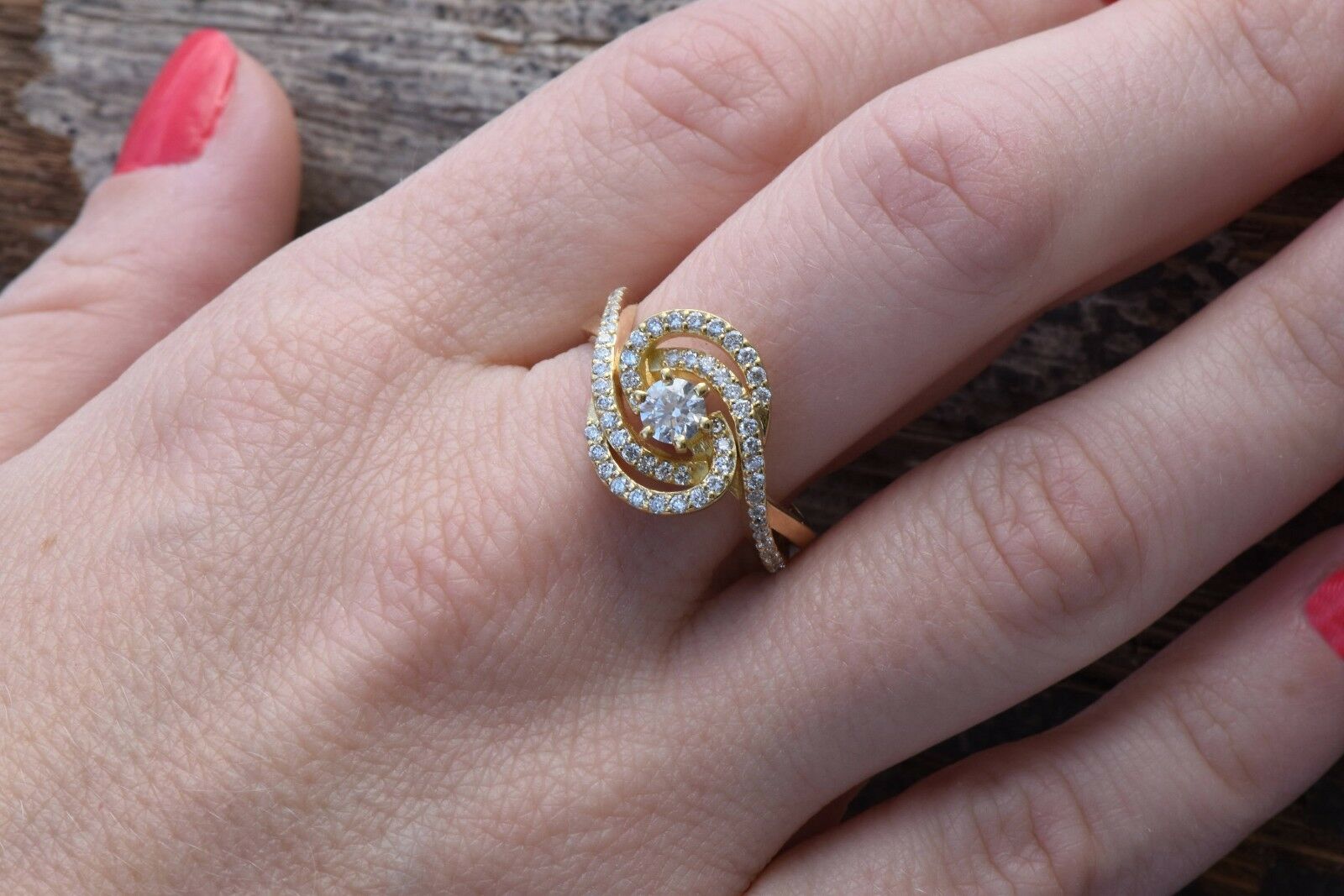 Unique Vintage Filigree Engagement Ring 2ct Round Diamond 14k Yellow Gold Finish