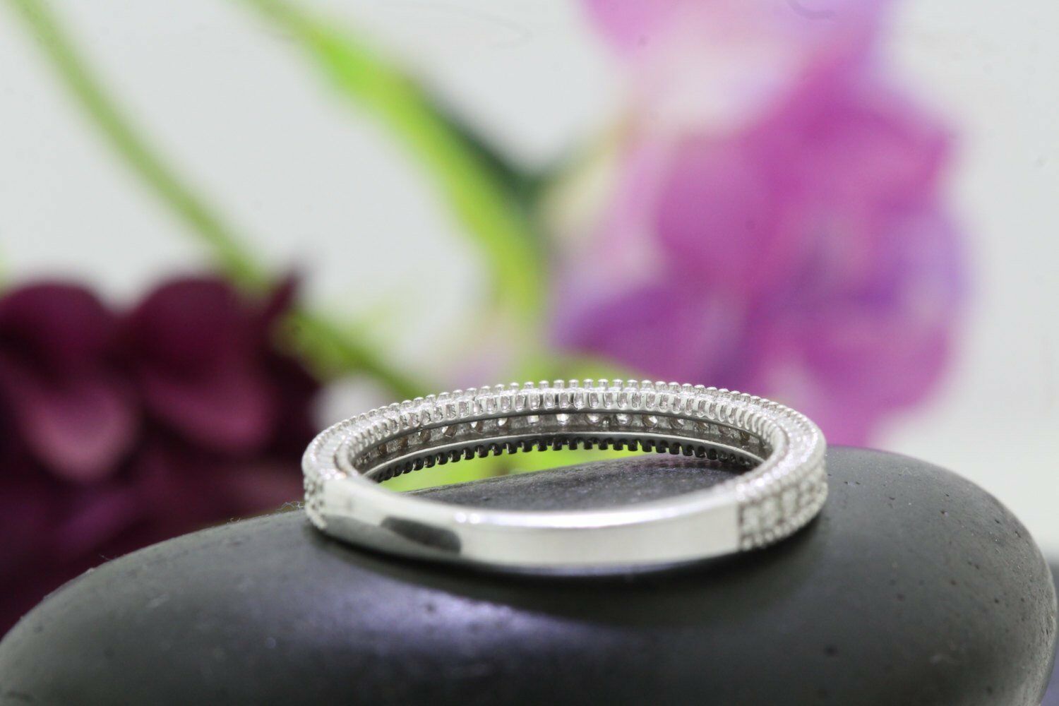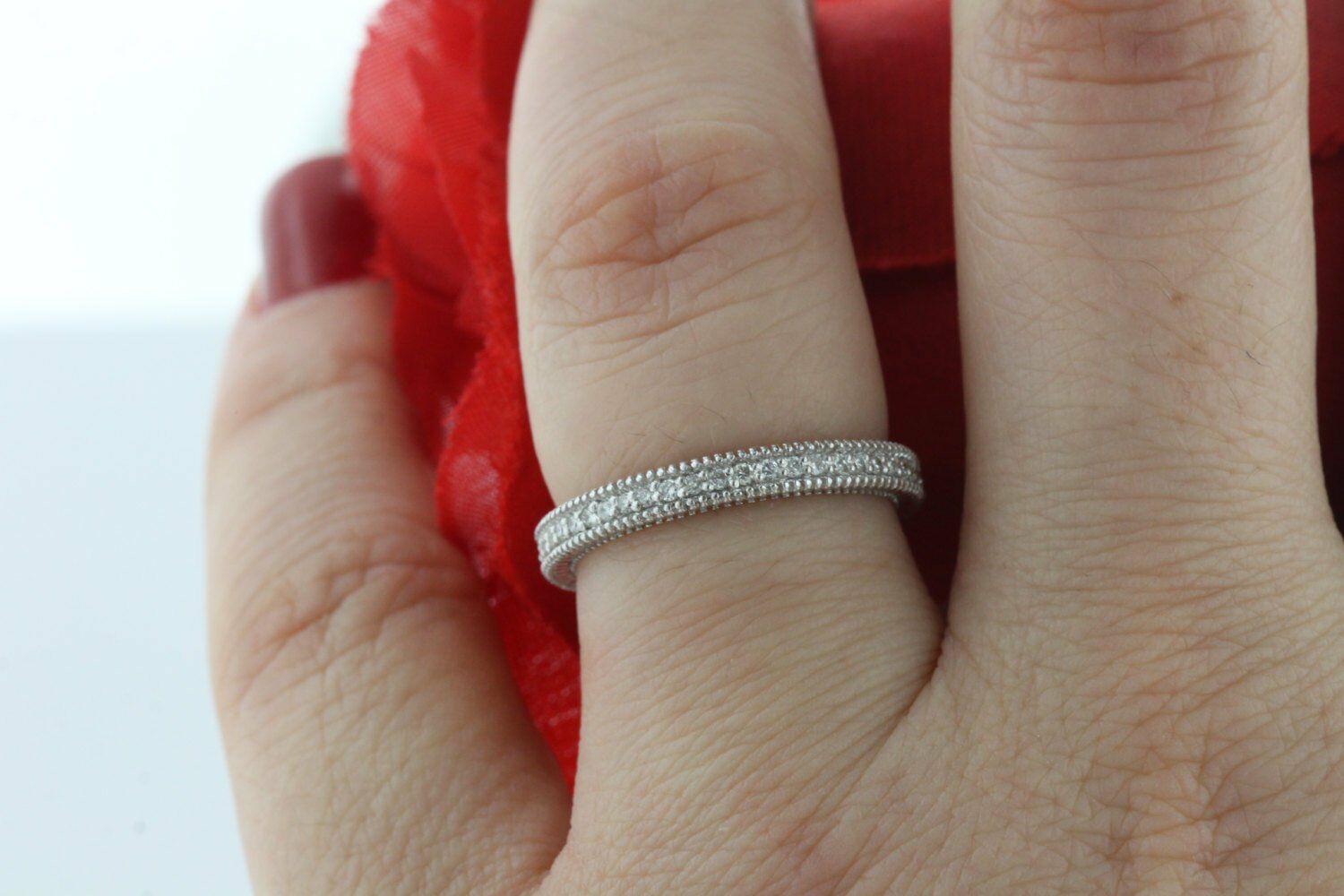 Vintage Eternity Wedding Ring Band 1ct Round Cut Diamond 14k White Gold Finish