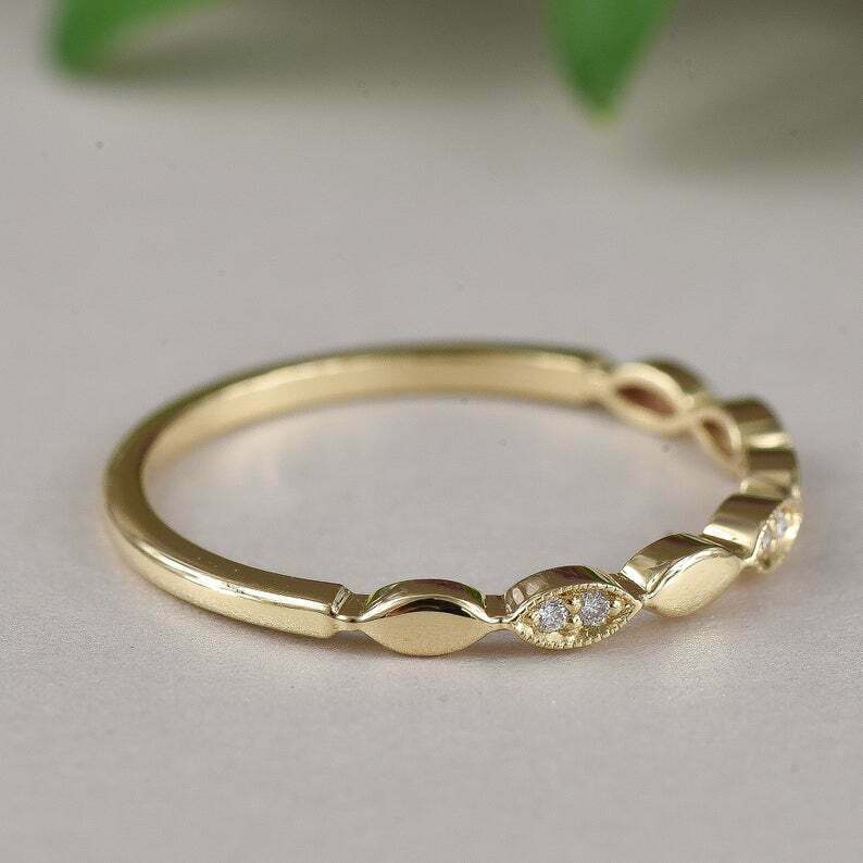 Vintage Half Eternity Wedding Band 0.5ct Round Cut Diamond 14k Yellow Gold Finish