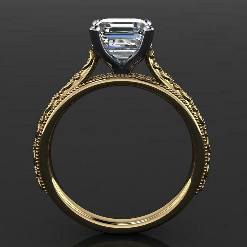 Vintage Milgrain Engagement Ring 1.6ct Asscher Cut Diamond 14k White Gold Finish
