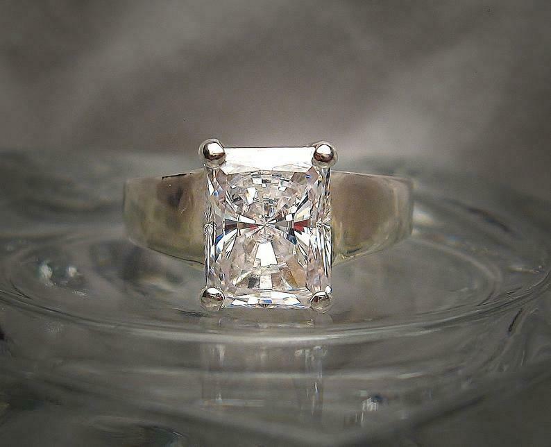 Women Solitaire Engagement Ring 2.5ct Radiant Cut Diamond 14k White Gold Finish