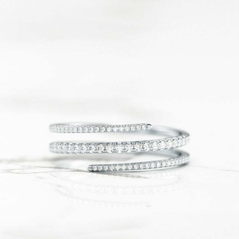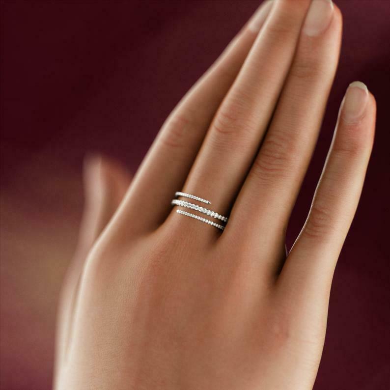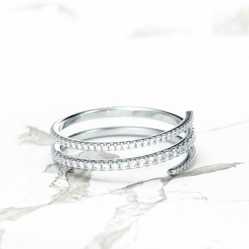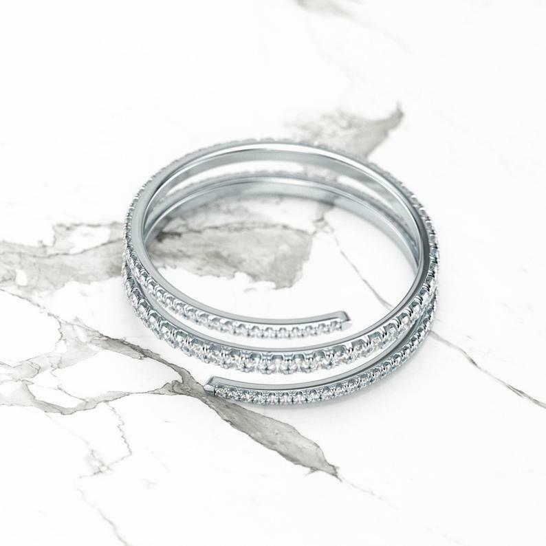 Wrap Around Band Engagement Ring 1.5ct Round Cut Diamond 14k White Gold Finish