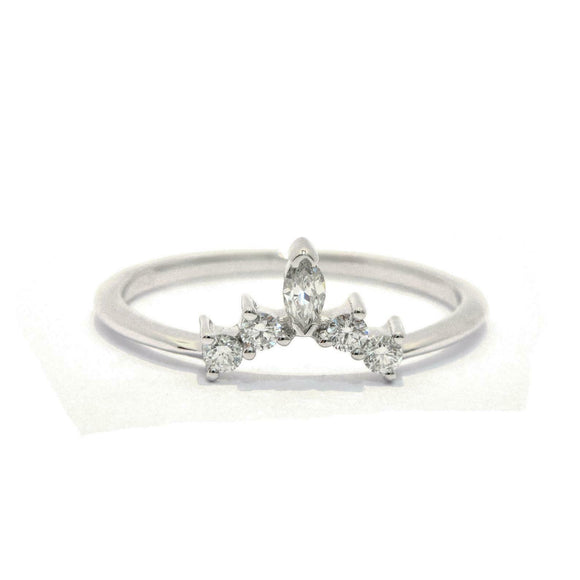 Crown Minimalist Engagement Ring 0.7ct Marquise Cut Diamond 14k WhiteGold Finish