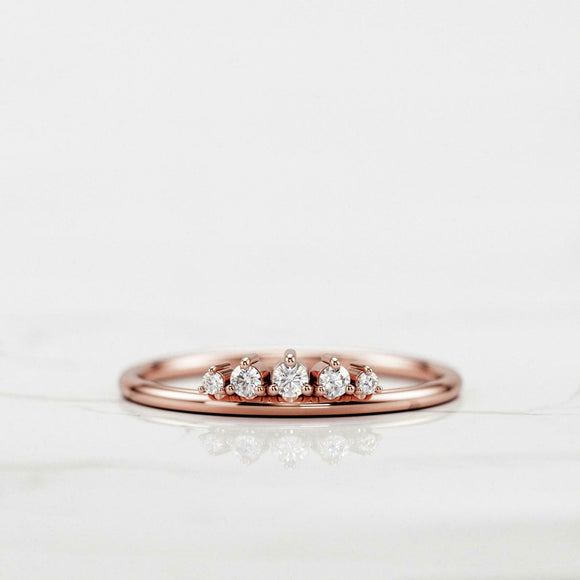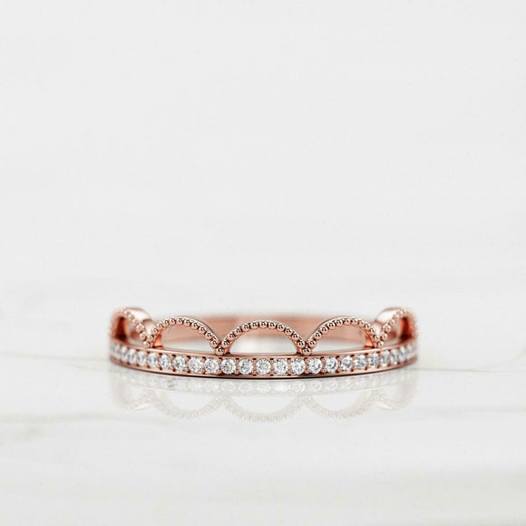 Milgrain Dainty Crown Wedding Band 0.3ct Round Cut Diamond 14k Rose Gold Finish