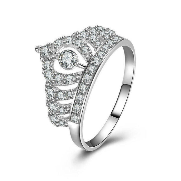 1.2ct Round Cut Diamond Princess Queen Crown Tiara Ring 14k White Gold Finish