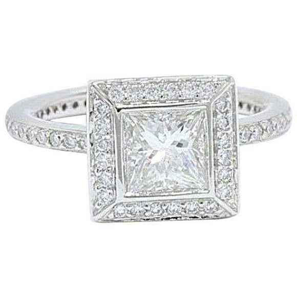 2ct Princess Cut Diamond Engagement Ring Halo Round Accent 14k White Gold Finish