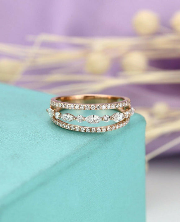 2ct Marquise Cut Diamond Wedding Band Three Row Open Stylish 14k RoseGold Finish