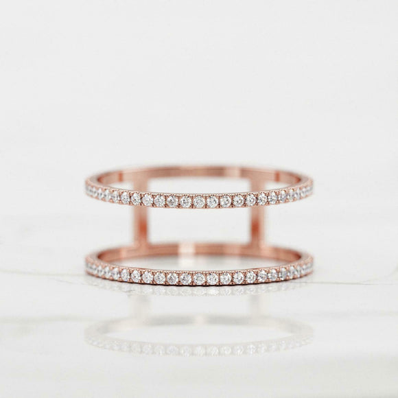 Double Row Open Wedding Ring Band 0.65ct Round Cut Diamond 14k Rose Gold Finish