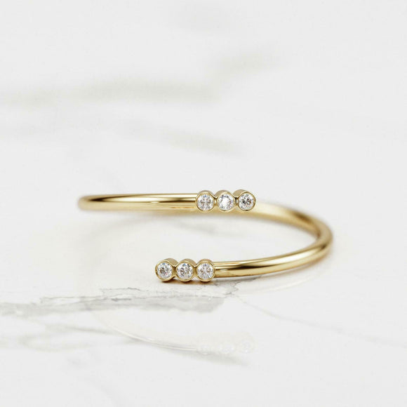 Bezel Set Open Bypass Engagement Ring 0.2ct Round Diamond 14k Yellow Gold Finish