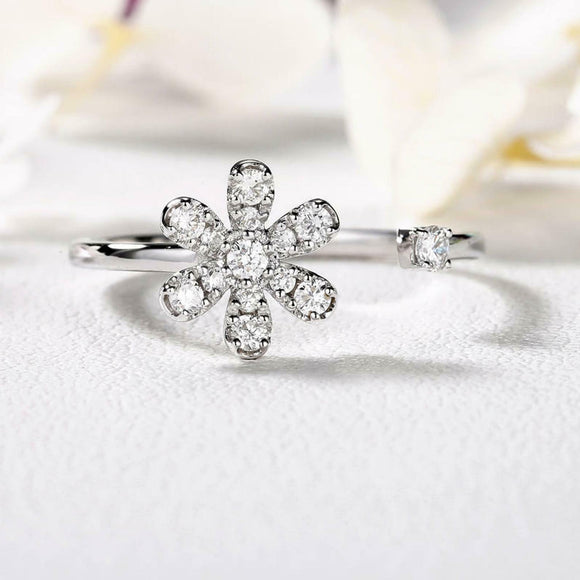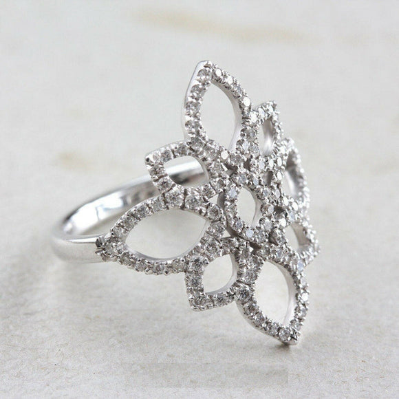 1.3ct Round Cut VVS1D Diamond Engagement Ring Flower Open 14k White Gold Finish
