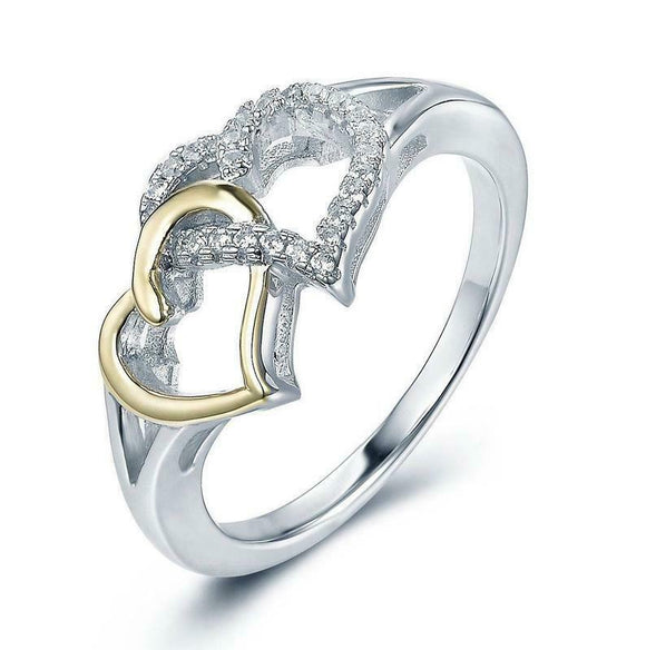 1.2ct Round Cut Diamond Dual Open Heart Bypass Style Ring 14k White Gold Finish