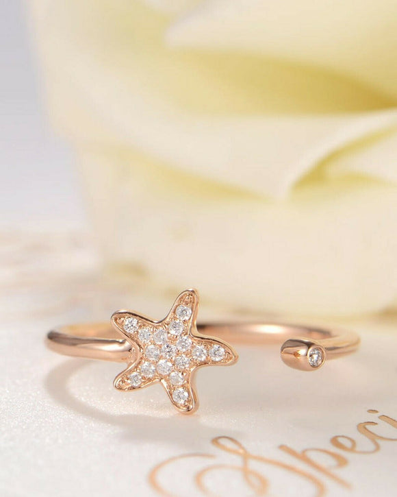 Open Cuff Star Fish Engagement Ring 0.3ct Round Cut Diamond 14k Rose Gold Finish