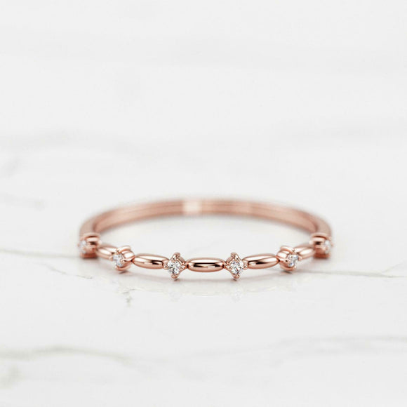 Minimalist Thin Promise Wedding Band 0.15ct Round Cut Diamond 14k Rose Gold Over
