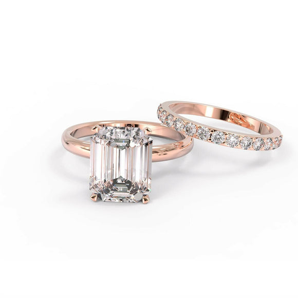 3.5ct Emerald Cut Diamond Engagement Ring Bridal Wedding Set 14k RoseGold Finish