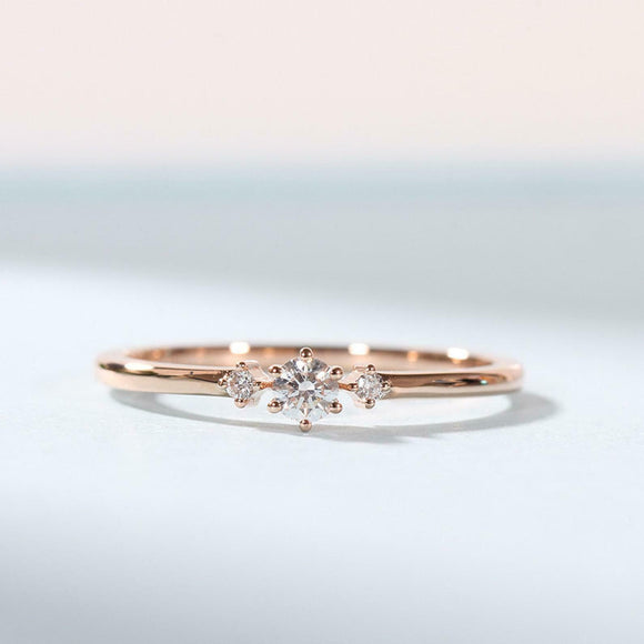 0.4ct Round Cut Diamond Engagement Ring Minimalist Trilogy 14k Rose Gold Finish