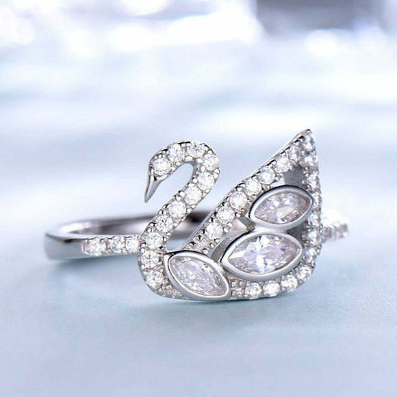 3.5ct Marquise Cut VVS1D Diamond Duck Swan Engagement Ring 14k White Gold Finish