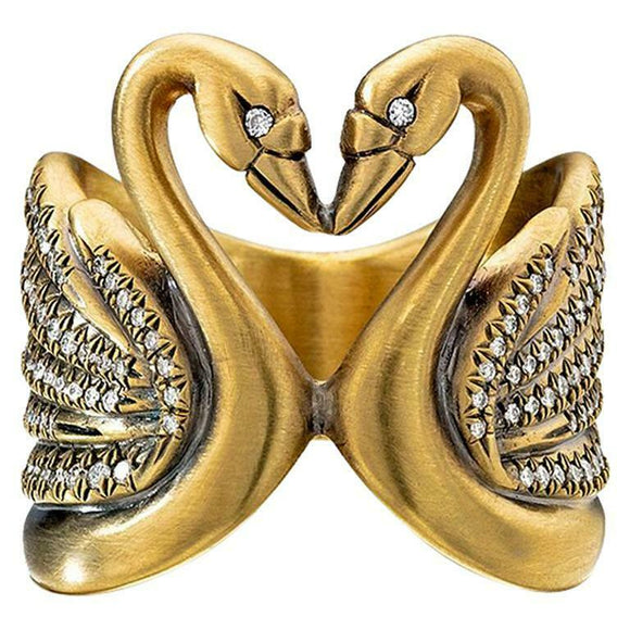 2ct Round Cut Diamond Engagement Ring Two Swan Duck Promise 14k Yellow Gold Over