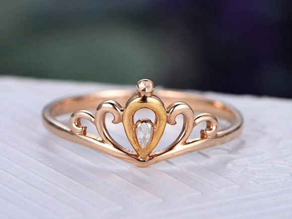 0.12ct Marquise Cut Diamond Engagement Ring Stylish Crown 14k Rose Gold Finish