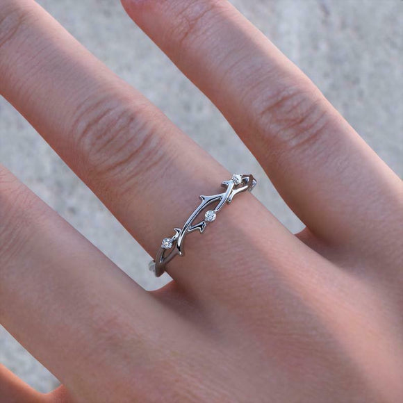 0.2ct Round Cut VVS1 Diamond Engagement Ring Floral Branch 14k White Gold Finish