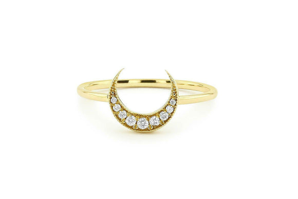 Crescent Moon Engagement Ring 1ct Round Cut VVS1D Diamond 14k Yellow Gold Finish