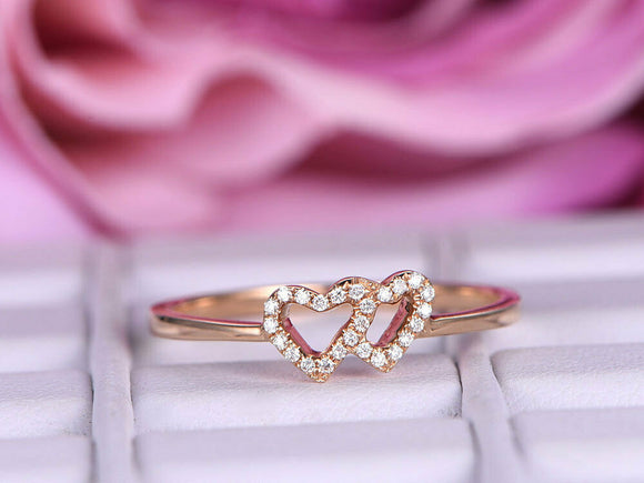 0.5ct Round Cut Diamond Engagement Ring Dual Heart Solitaire 14k Rose Gold Over