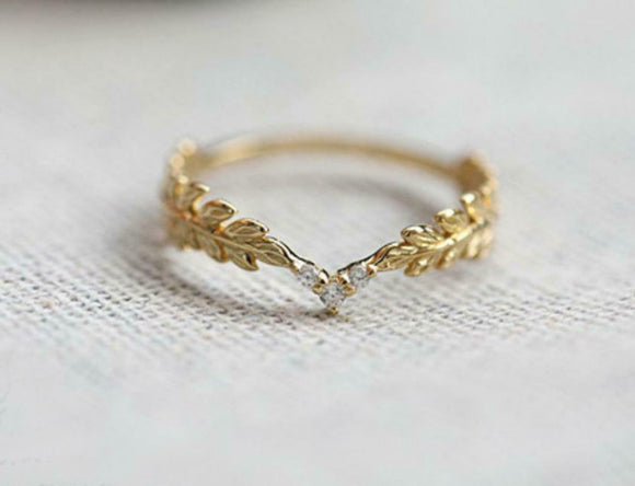 0.2ct Round Cut Diamond Tiara Floral Leaf Minimalist Ring 14k Yellow Gold Finish