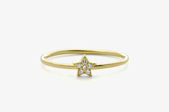 Star Shaped Minimalist Engagement Ring 0.5ct Round Diamond 14k Yellow Gold Over