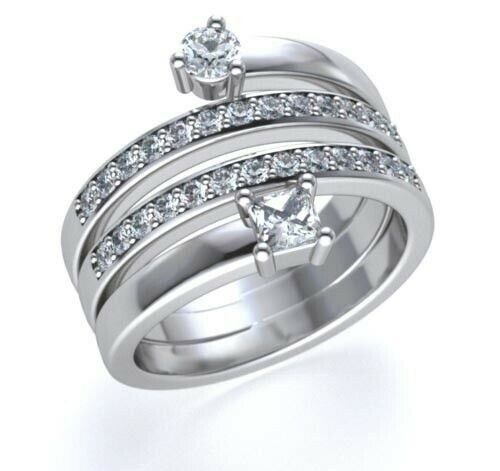 3Ct Round Princess Cut Diamond Wrap Bypass Engagement Ring 14K White Gold Finish